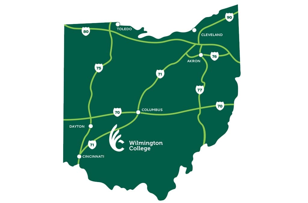 From the north: Take I-71 south to U.S. 68. Follow 68 south into Wilmington. Turn left onto Main Street and follow it through Wilmington to College Street. Turn right onto College Street.