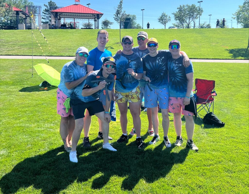 Pictured are Team Gel members who competed in the Boomerang World Championships in Colorado earlier this month. Jake Stein is in the middle wearing yellow shorts.