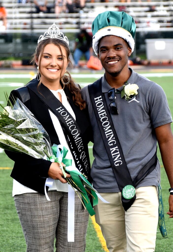 The 2020 Homecoming royalty, King Darron Crump and Queen Mackenzie (Macki) Leon, returned to their alma mater to crown 2021 King Jaymirr Johnson and Queen McKenzie Riley. Their court featured seniors Virginia Kongos, Shabbir Thompkins, Lauryn White, Tiffany Hayes, Brent Ponikvar and Kane Lewis.