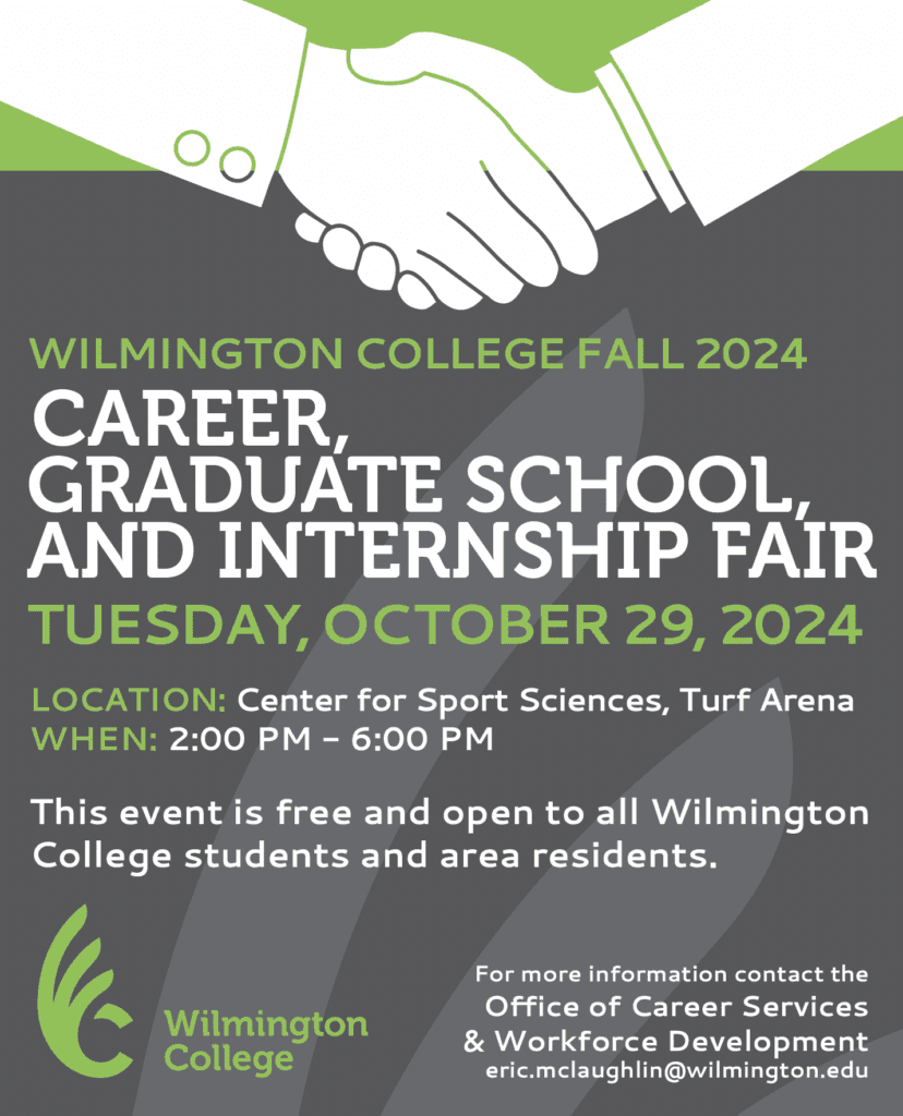 Several dozen recruiters from business, industry, law enforcement, agriculture and non-profit organizations seeking potential employees and interns will converge at Wilmington College for its annual Fall Career Fair on Oct. 29, from 2 to 6 p.m., on the turf field at the Center for Sport Sciences.