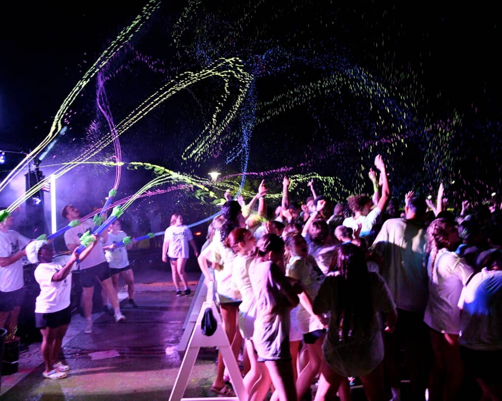 New and returning students enjoyed the Wilmington College tradition of the Saturday Night Paint Party, which featured dance music choreographed by the spraying of colorful (nontoxic) fluorescent paint.