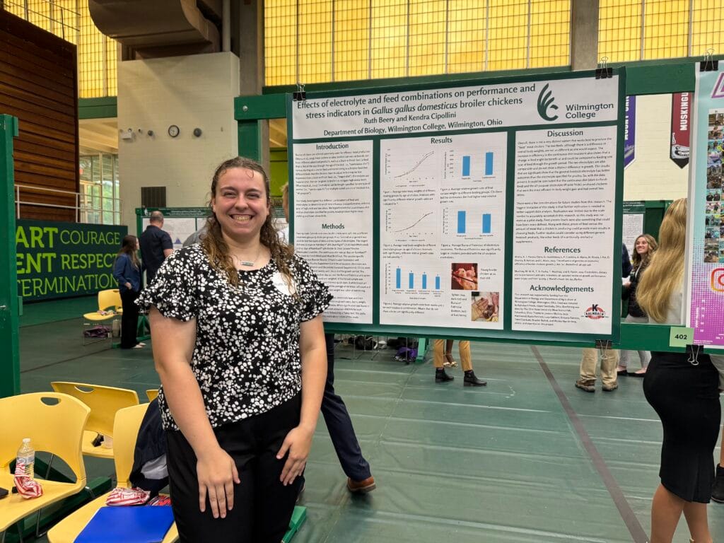 PICTURED ABOVE: Ruth Beery, who won a President's Council Award, is pictured beside her poster presentation, “Effects of Electrolyte and Feed Combinations on Performance and Stress Indicators in Gallus gallus domesticus Broiler Chickens."