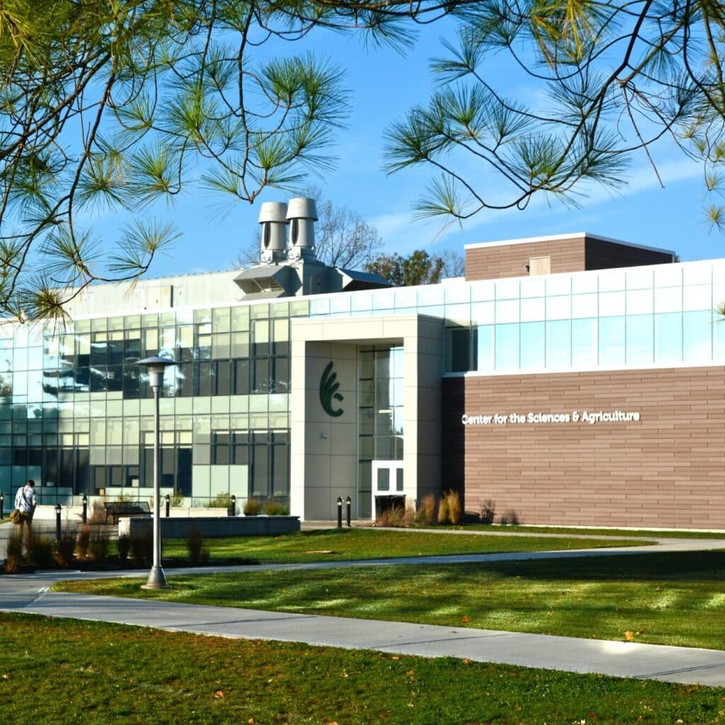 The three-story Kettering Hall replaced Bailey Hall, which had been the home of the sciences since 1909. Physics and mathematics originally occupied the first floor while biology had the second and chemistry the third. The College Observatory was placed atop the facility, continuing the tradition established in 1882 of having an astronomical observatory. Kettering Science Hall served Wilmington College students well since opening in 1960, but its aging infrastructure and the recent influx of students in agriculture and the sciences brought about a need for a renovation and expansion in 2014. A $19.7 million, low-interest loan payable over 32 years, provided by the U.S. Dept. of Agriculture’s Rural Development division, made the project possible. Also fundraising efforts reached $8.5 million for the $14 million Center for the Sciences & Agriculture, which was dedicated as part of Homecoming Oct. 8, 2016. The Center for the Sciences and Agriculture includes the renovated 34,000 square-foot Kettering Science Hall and a 13,500 square-foot addition. The facility hosts 10 classrooms, 10 laboratories, three research labs, two 100-seat lecture halls and 30 offices. The CSA, which was designed for LEED certification as an environmentally friendly facility, is the College’s largest academic building. A new Observatory sits atop the CSA.